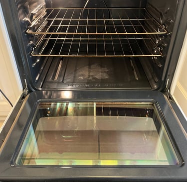 If you are feeling really motivated, there will be times that the glass door of your oven will have a mess in between the glass. The best way to handle that is by using a screwdriver and separating the door so you can get between the panes. You can watch this video here for help on how to navigate this bit!